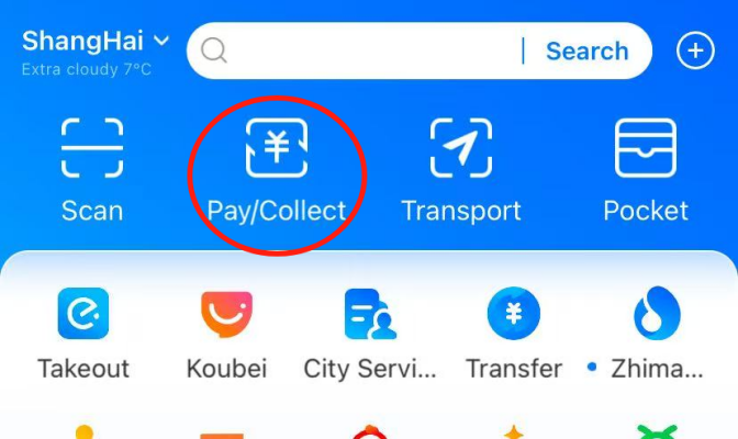 2. meetod: klõpsake nuppu „Tasu/kogumine”, seejärel esitage kaupmees oma QR -kood