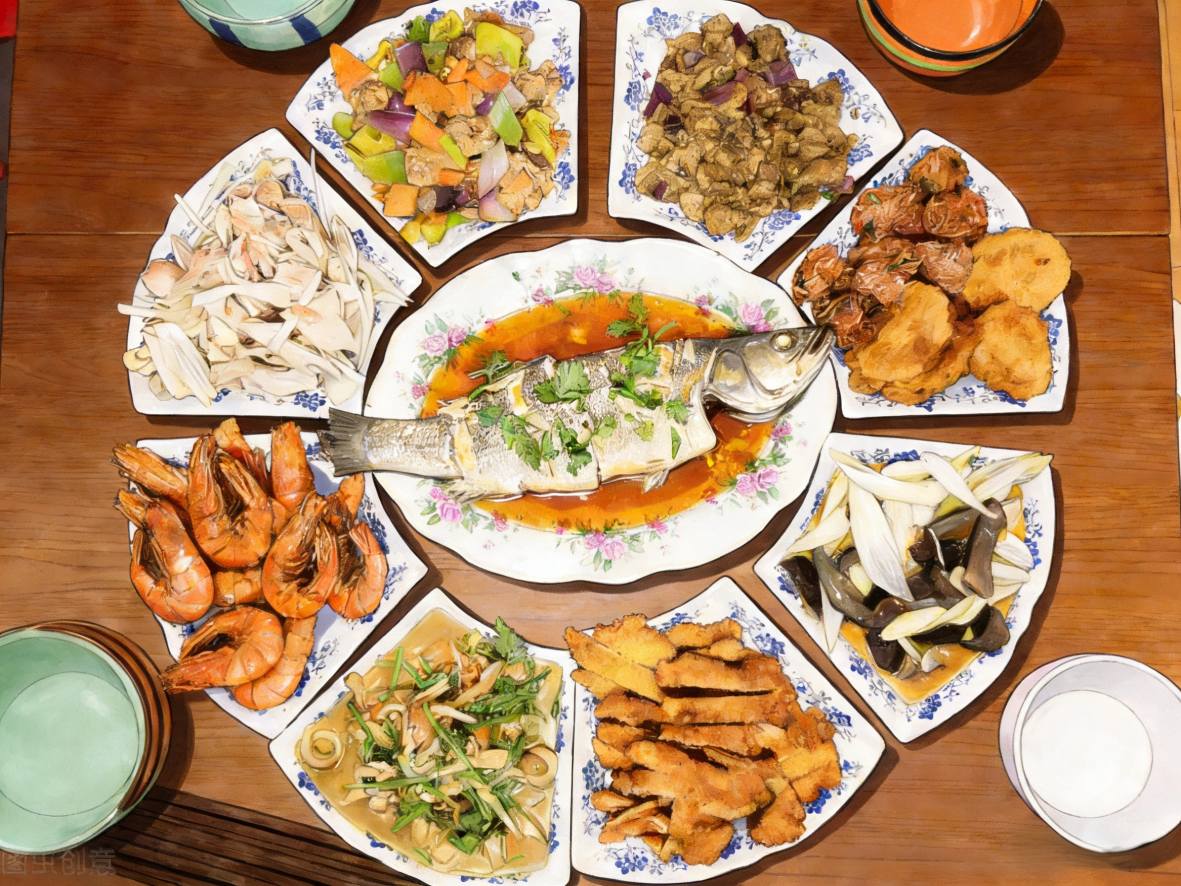Kuigi Hiina põhja- ja lõunaregioonidel on oma kulinaarsed traditsioonid, on kindel, et aastavahetuse õhtusöögi puhul antakse toidule eriline tähendus. Nagu kala tähendab aastast aastasse õitsengu soovi, kõlab salat hiina keeles nagu rikkaks saamine.
