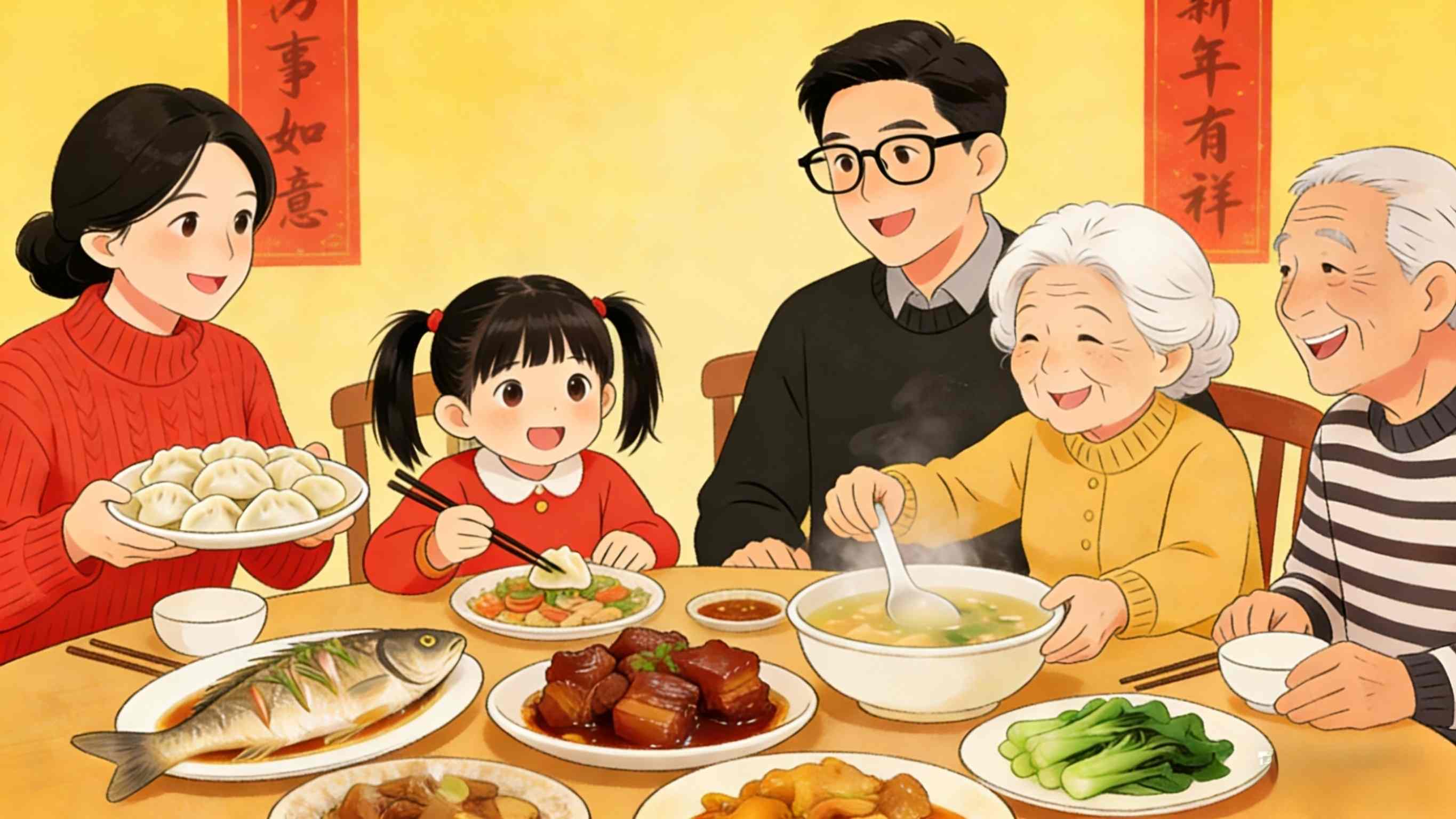30. jaanuari õhtul, Hiina kalendri järgi aasta viimasel päeval, kogunevad pered kokkutuleku õhtusöögile, jagades üksteise seltskonnas soojust ja rõõmu.